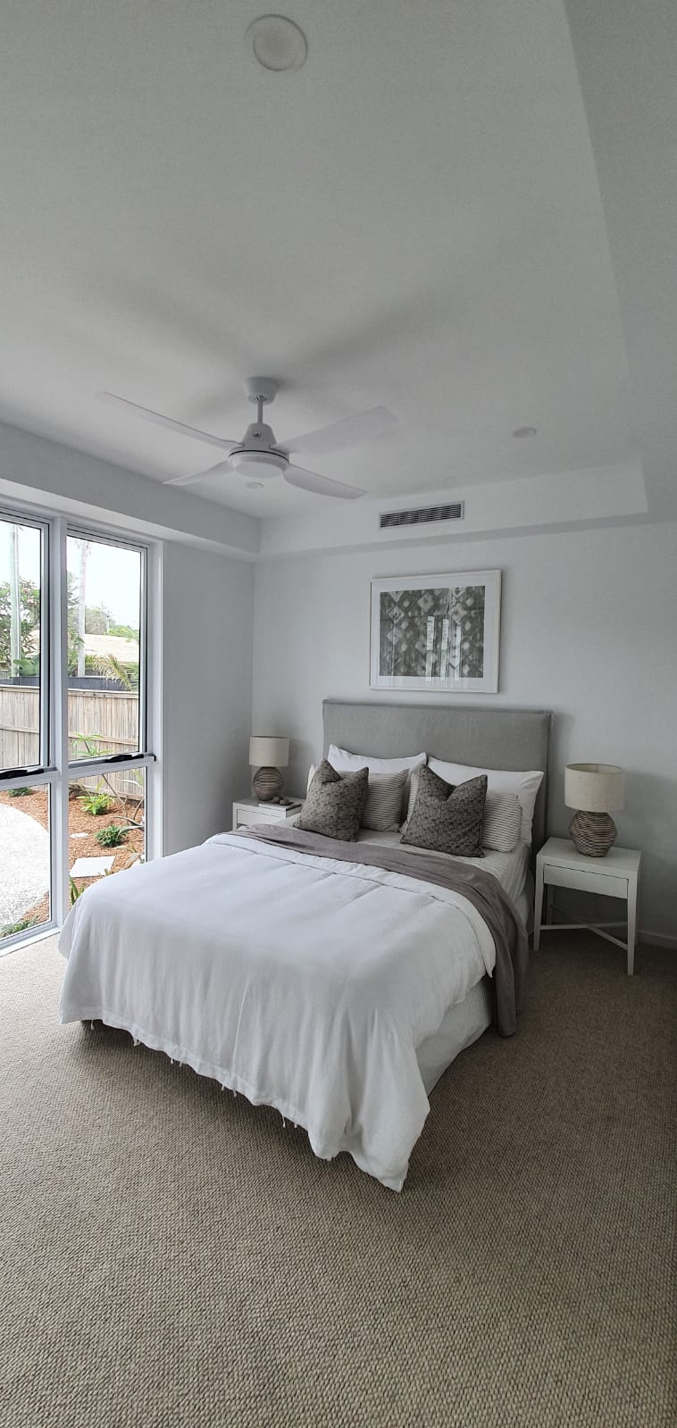 Ducted air conditioning is the ultimate climate control solution—quiet, discreet, and designed to cool or heat your entire home efficiently. The system includes an outdoor unit, an indoor unit (typically installed in your ceiling space), and a network of ducts that deliver air to vents throughout your home. A return air outlet draws air back into the system to be cooled or heated, ensuring consistent, even airflow.